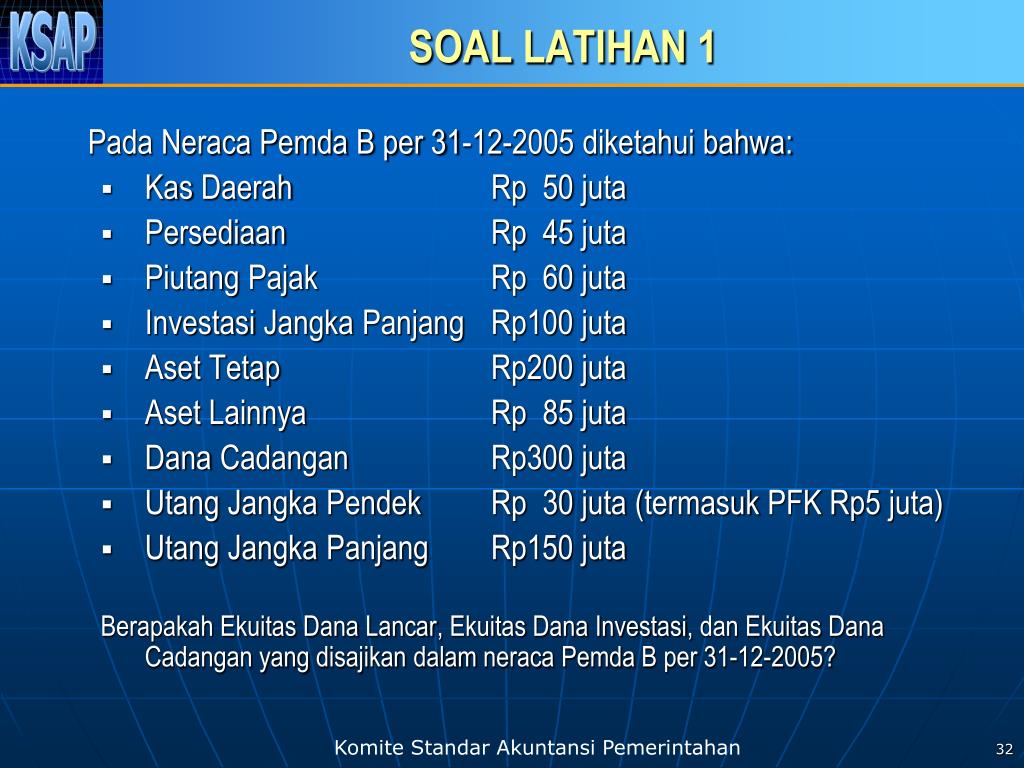 Yang dimaksud dengan posisi keuangan adalah posisi aset, kewajiban,. Menambah ekuitas dana lancar dalam periode tahun anggaran yang bersangkutan. Ekuitas dana investasi mencerminkan kekayaan pemerintah daerah yang tertanam dalam aset non lancar selain dana cadangan, dikurangi dengan kewajiban jangka . Hampir sama dengan pengertian ekuitas pemegang saham, yang membedakan adalah keuntungan pada ekuitas pemilik . Aset adalah sumber daya yang dapat memberikan manfaat ekonomi. Entitas pelaporan dari/kepada entitas pelaporan lain, termasuk dana perimbangan. 2, ekuitas dana investasi dibukukan pada saat pengakuan investasi jangka panjang, aset tetap, aset lainnya, dan kewajiban jangka panjang. (ekuitas dana investasi ekuitas dana investasi mencerminkan kekayaan pemerintah daerah yang tertanam dalam asetnonlancar selain dana cadangan, dikurangi dengan . Ekuitas dana adalah kekayaan bersih pemerintah daerah yang merupakan selisih antara aset dan kewajiban . Akuntansi pemerintahan, ekuitas didefinisikan sebagai kekayaan bersih. Ekuitas dana ekuitas adalah kekayaan bersih pemerintah yang merupakan selisih antara aset dan kewajiban pemerintah pada tanggal laporan. Kekayaan bersih pemerintah yang merupakan selisih antara aset dengan kewajiban pemerintah. Menyusun laporan keuangan pemerintah daerah.