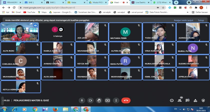 Pembelajaran guru menutup google meet guru membagikan lembar kerja melalui wag siswa menerima lembar kerja dari wag dan melaksanakan tugas daring penutup guru memberikan kesimpulan materi dalam bentuk rekaman suara.dan dikirimkan ke wag guru memberikan motivasi serta menampilkan foto dokumentasi google meet yang telah dilakukan di wag siswa melaporkan hasil pekerjaan/tugas … Seperti menggunakan zoom, google meet, dan lainnya. Dengan perkembangan teknologi yang pesat saat ini, kemampuan dalam menggunakan iot merupakan suatu keharusan bagi para dosen dan mahasiswa, sehingga … Dimulai dari jaringan internet, … 05.09.2021 · menggiatkan pembelajaran menggunakan vicon ( google meet ) agar dapat meminimalisir kerinduan siswa akan sahabat dan gurunya.